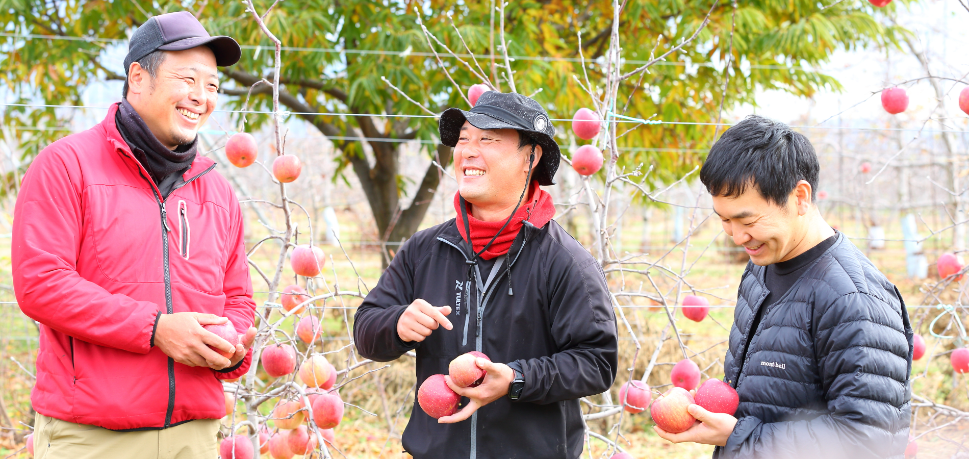 また、りんごの栽培では、果実一つひとつに袋をかぶせて栽培するところもありますが、袋を被せるのは、見た目を美しくするためと、蜜の入り方を少なくして傷みにくく保存性を高めるため。上條さんと岩垂さんは見た目よりも美味しさを重視しているため無袋栽培を行なっていますが、同時に産業廃棄物(りんごの被せる袋のゴミ)を減らすことにも繋がっています。